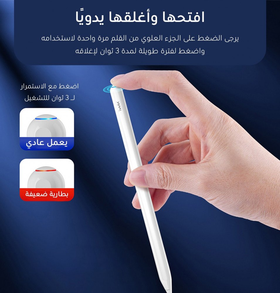 قلم الايباد المطور من iwin يدعم الشحن المغناطيسي - أبيض